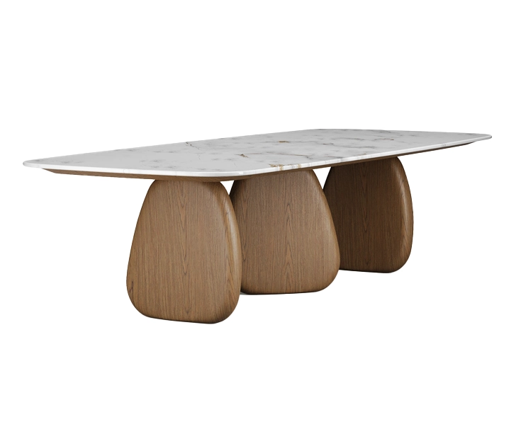 Las proporciones generosas y la posibilidad de configurar su forma —con esquinas redondeadas o chaflanes— convierten a Marbella en una pieza central para comedores amplios y proyectos contract con alta exigencia estética. La versatilidad de sus acabados y medidas la hace apta tanto para espacios residenciales elegantes como para contextos profesionales.