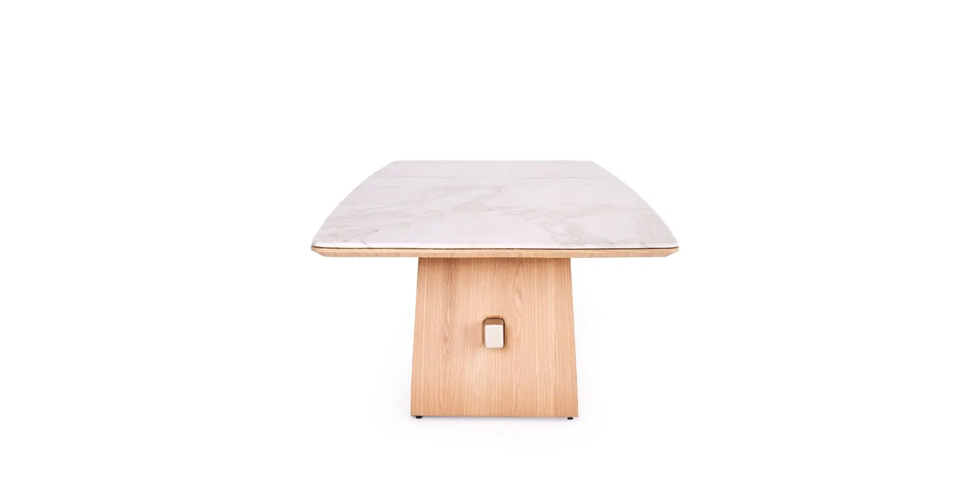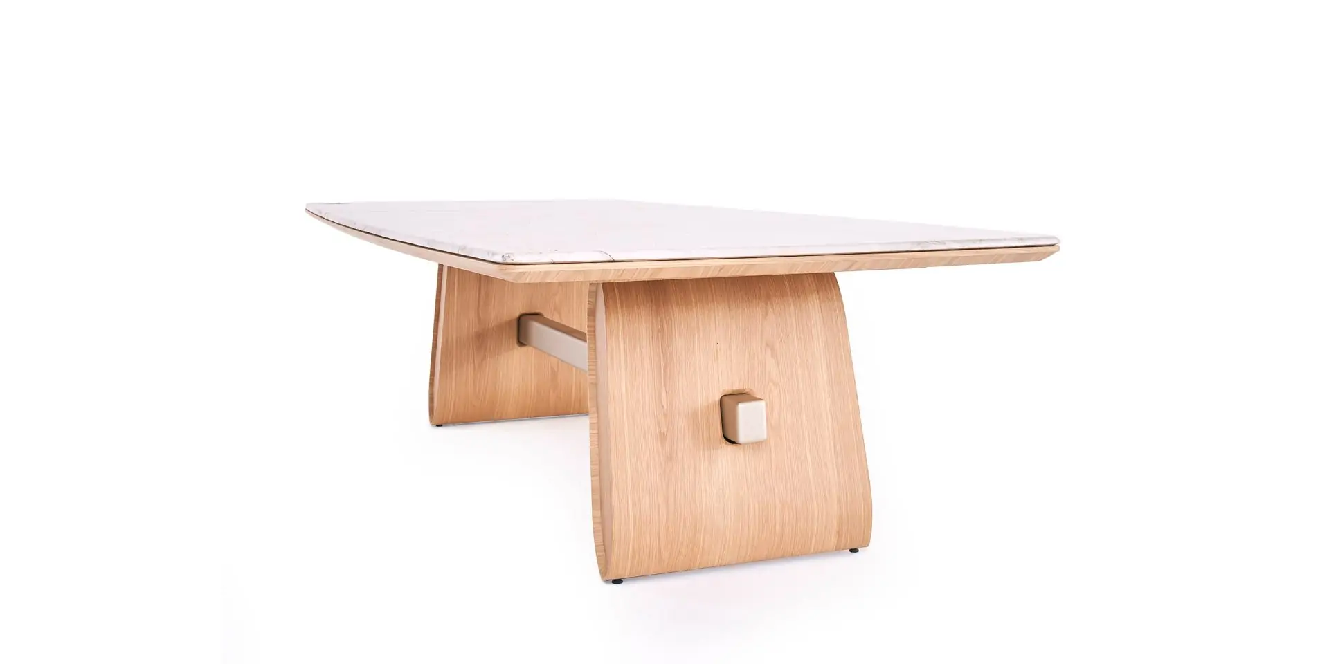 Zest presenta una silueta suave y fluida, pensada para aportar equilibrio y ligereza visual. Su base asimétrica, revestida en chapas naturales, añade textura y personalidad al conjunto. El sobre ovalado, con bordes orientados en distintas direcciones, aporta dinamismo y un guiño sutil a la forma de una cáscara de limón.